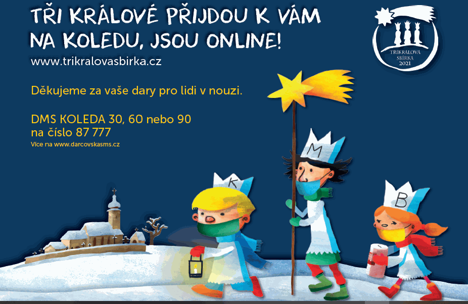 - Tříkrálová sbírka bude letos probíhat online, prosíme o příspěvky:Kasičky však mohou být umístěny ve veřejně přístupných prostorech, budeme je mít v obou kostelích pro příspěvky v hotovosti.
